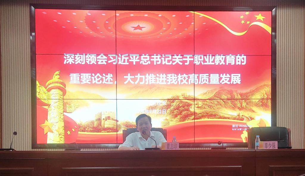瞿副校长系统梳理了习近平总书记对职业教育的重要批示和论述,结合学校实际,指出我校职业教育发展要兼顾规模扩大和质量提升;要主动适应国家社会对人才培养的更高要求,不断创新人才培养模式,提升人才培养质量;要按照专业设置与产业需求对接、课程内容与职业标准对接、教学过程与生产过程对接的要求,办出特色和水平;要打开大门办教育,吸引优质社会资源参与学校建设,形成多元化办学格局;要大力实施1+X证书制度,瞄准人才紧缺领域,深化复合型技术技能人才培养培训模式改革,广泛开展职业技能培训,为提高社会人力资源质量贡献力量。
