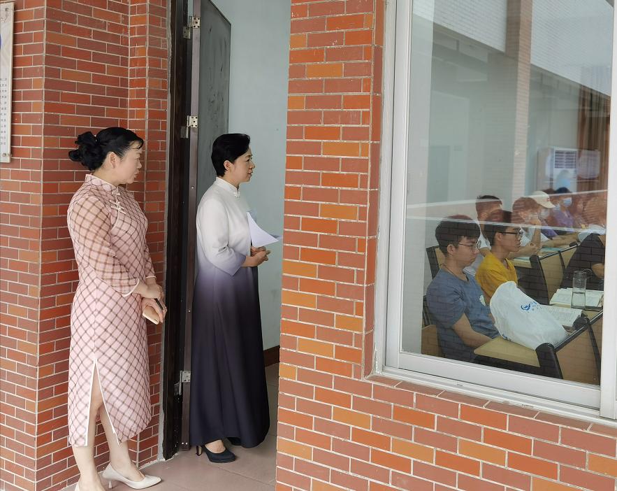 在教学楼,刘文清在教务处负责同志的陪同下,逐层逐间察看课表安排、学生到课率、课室教学秩序等,不时驻足旁听教师授课,并与师生亲切交流,详细了解开学一个月来线上线下教学衔接情况以及对做好教学服务的意见建议等。师生普遍反映,上学期的在线教学体验非常好,体现了学校信息化优势;经过学校前期周密部署,当前线上线下教学衔接顺畅;学校近期推出的排课办法改革、交通车路线及车次优化完善等举措,给教学提供了极大便利。刘文清听后非常高兴,勉励他们充分利用学校提供的良好教学条件,勤奋学习、努力工作,教有所成、学有所获。刘文清同时指出了教学中存在的一些问题,要求进一步加强教学管理。一是督促任课教师严格执行学校相关制度,对上课学生进行考勤,掌握学生到课情况;二是要加强教师职业形象管理,做到衣着整洁,仪表端庄,言传身教,以美育人。