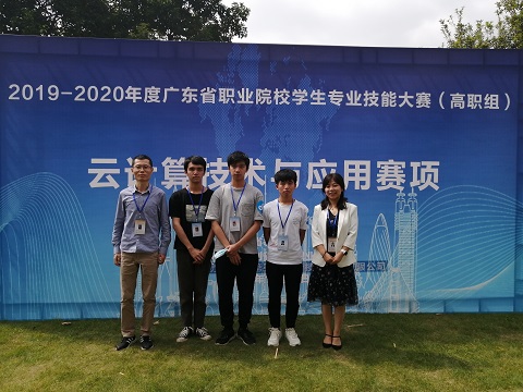 10月17日,2019-2020年度广东省职业院校学生专业技能大赛(高职组)云计算技术与应用赛项在广东创新科技职业学院举行,我校人工智能学院派出以丁慧洁副院长和贾峰老师为指导教师,网络技术专业的梁晋誉、刘虎和软件技术专业的蔡声煜三位同学组成的参赛队伍,经过师生的共同努力和辛苦付出,不负众望喜获省赛一等奖。