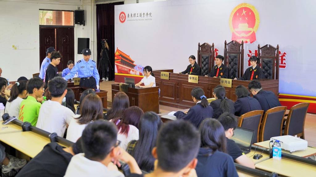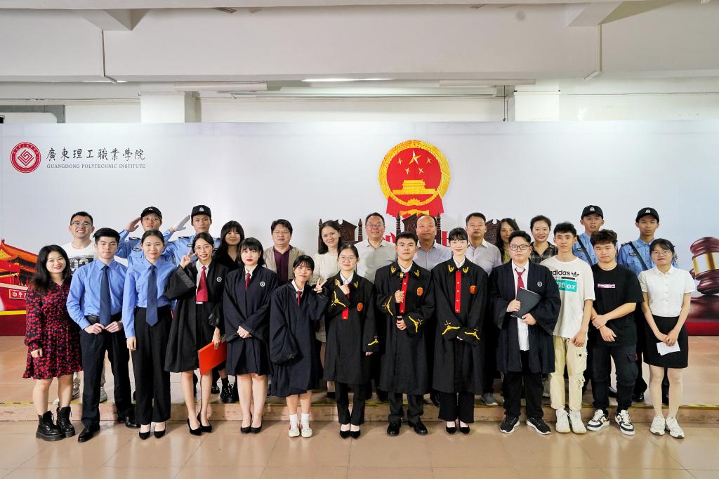 为助力学校依法治校示范校建设,加强学校法治文化建设,提高法律事务专业学生的专业技能,11月19日,我校在中山校区举办模拟法庭大型公演活动。本次活动由规划与体系建设处主办,法律与行政学院承办,校团委协办。学校规划与体系建设处处长李光先,法律与行政学院院长王磊、党总支副书记钟国安、副院长汪跃平和广东载信律师事务所律师侯靖宇以及来自法律与行政学院以及各兄弟学院、校团委的老师、同学近300人参加了本次活动。