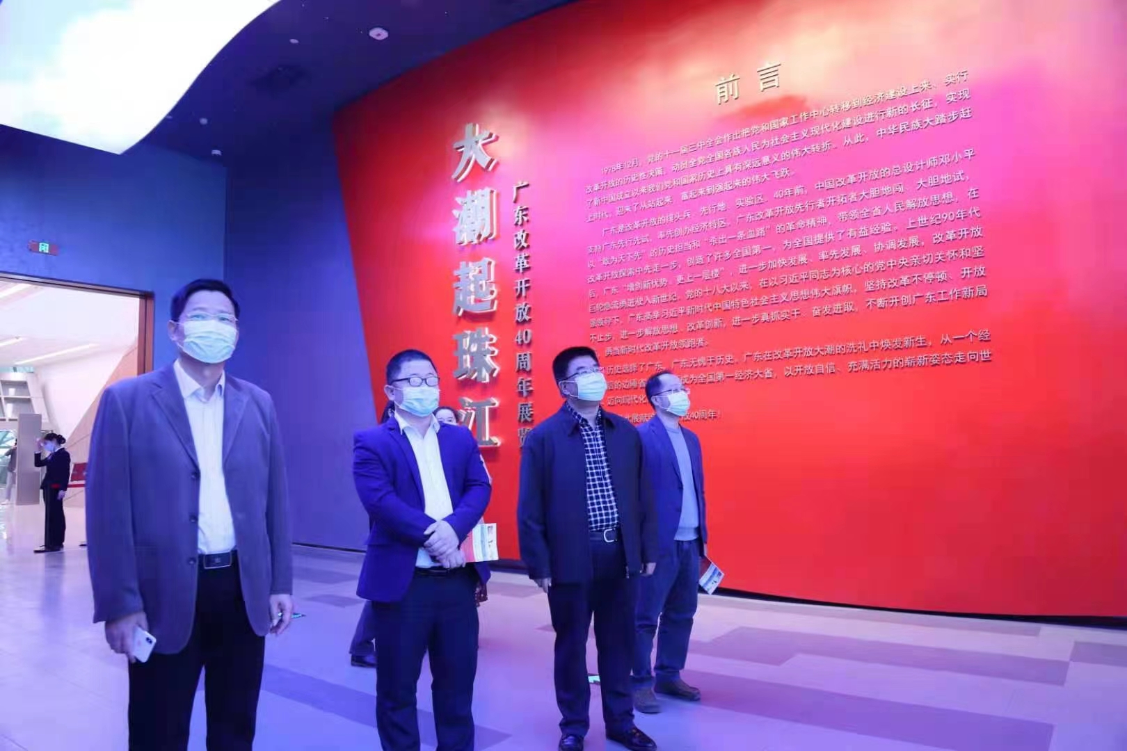 春风吹南粤,大潮起珠江。在深圳改革开放展览馆,罗书记与支部其他党员一起驻足观看,重温改革开放以来南粤大地波澜壮阔的峥嵘岁月和沧桑巨变。展厅里,一幅幅珍贵的历史图片,一行行娓娓道来的纪实文字,一幕幕气势宏大的视频影像,令党员们心潮澎湃,备受鼓舞。广东改革开放40周年展览面积达6300平方米,由“敢为人先 勇立潮头”“增创优势 砥砺前行”“走在前列 当好窗口”等三部分组成,运用照片、实物、视频、模型、场景、雕塑和高科技手段、互动体验项目,全面、生动和立体地展现广东改革开放40年的壮阔历程和辉煌成就。