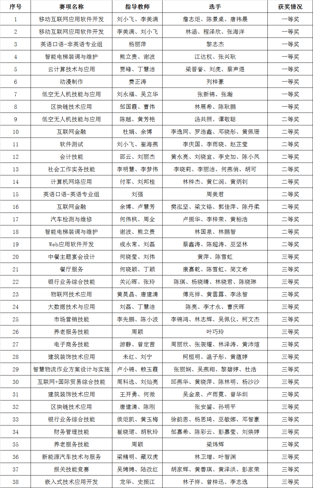 2019-2020年度广东省职业院校学生专业技能大赛获奖情况一览表