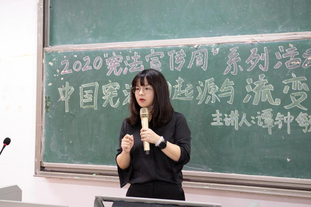 12月10日,本系列的第二次讲座——由法律与行政学院谭钟毓博士主讲的“中国宪法的起源与流变”讲座继续精彩开讲,吸引了来自全校各个专业150余名同学参加了本次讲座。谭钟毓老师从1908年晚清政府颁布的《钦定宪法大纲》到新中国成立后的五次宪法修正案的按历史时期梳理了中国宪法的流变及后来宪法的发展,帮助同学们更好的了解了中国各时期的宪法的内容与意义。