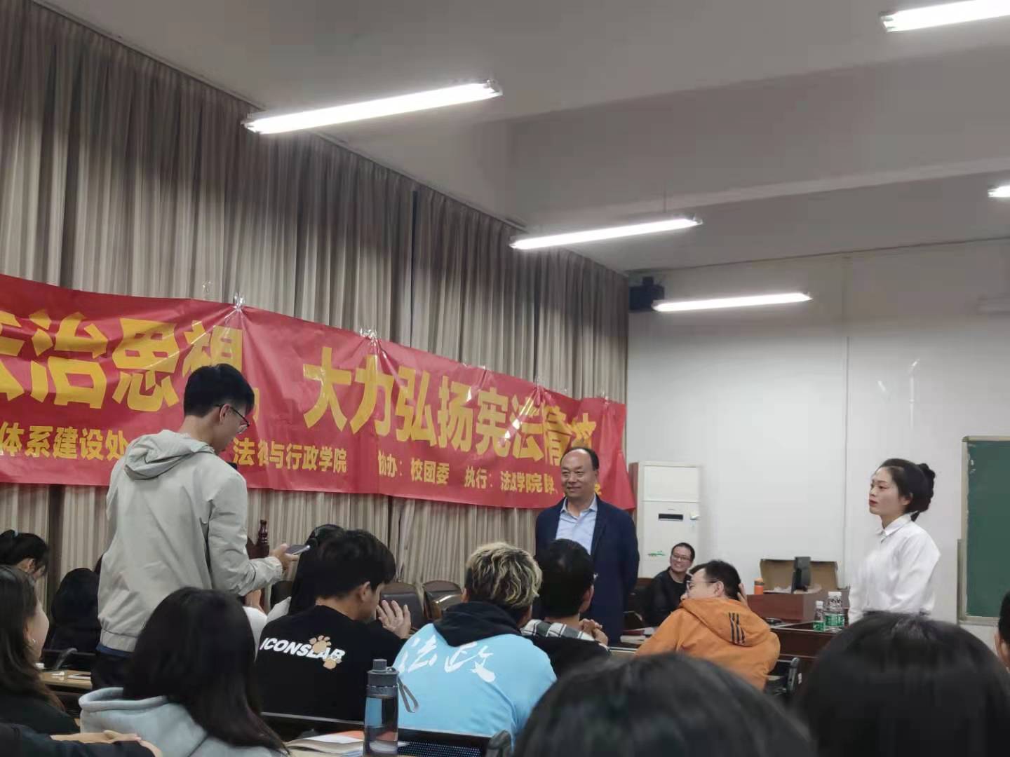 为认真学习贯彻习近平法治思想,深入贯彻落实党的十九大和十九届五中全会精神,我校举办了“宪法宣传周”系列普法讲座。本次活动由规划与体系建设处主办,法律与行政学院承办,学校团委协办,法政学院团学以及青年法学社具体执行。