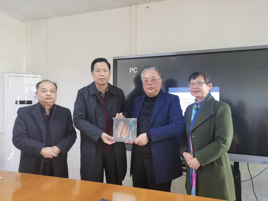 罗海鸥书记向云浮开大校长谭志坚赠送校园文化景观宣传册