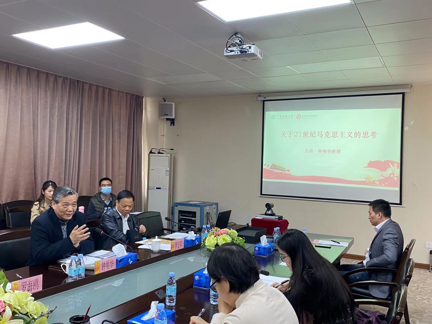 钟明华教授以《关于21世纪马克思主义的思考》为题,以增强思政课的思想性、强化思政课思想渗透力、不断满足学生发展的需求和期待为切入点,逻辑清晰、深入浅出地讲了21世纪马克思主义重要问题研究的缘起,21世纪马克思主义的基本特征、基本内涵、建构、相关研究的重要命题和问题探讨及其整体性的再认识等问题,突出了马克思主义理论的实践品格,强调马克思主义对社会现实问题的关注与实践形态构建,展望了人类命运共同体在21世纪马克思主义理论建构中的轴心地位,指出其落脚点在21世纪中国特色社会主义对资本主义的超越与改造。
