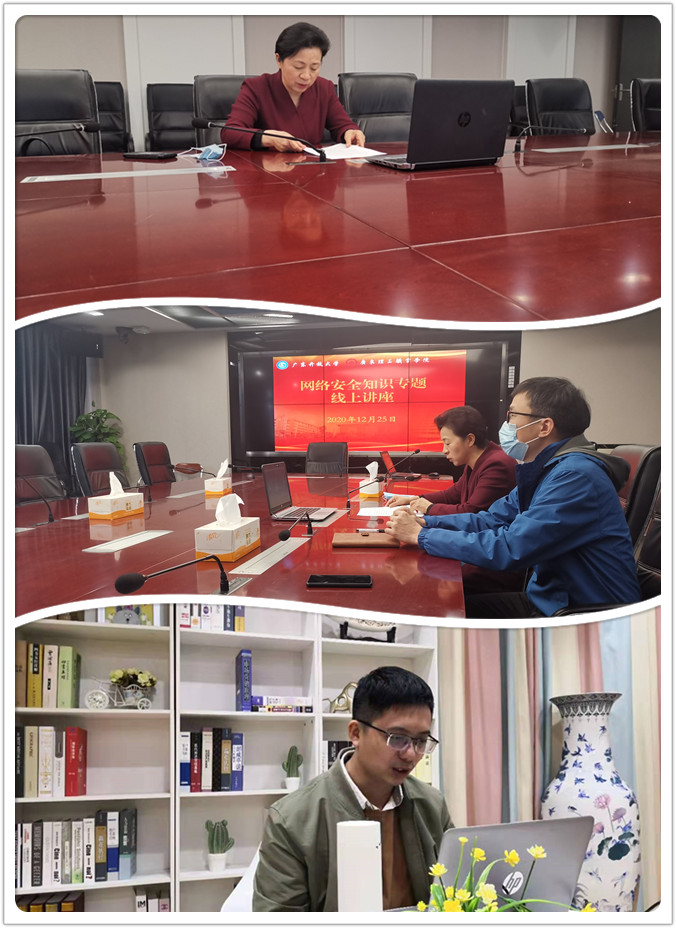 为深入学习贯彻《中华人民共和国网络安全法》,进一步提升我校师生网络安全意识,营造安全、健康、文明、和谐的校园网络环境,12月25日下午,学校以视频会议形式举办了主题为“身边的幽灵:漫谈信息安全意识”的网络安全知识专题线上讲座,特邀北京神州绿盟科技有限公司资深网络安全专家黄其森担任主讲人。学校党委副书记、校长刘文清主持讲座,160余名师生聆听了讲座。