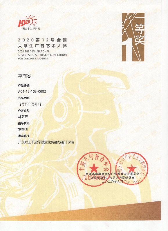 继动漫制作技术专业在2019-2020年度广东省职业院校学生专业技能大赛(高职组)动漫制作赛项中荣获省赛一等奖的优异成绩之后,我校数字媒体技术专业群在大学生广告艺术大赛的省赛和国赛、全国高校数字艺术设计大赛、广东省大学生印刷创意设计大赛、上海国际大学生广告节等省级以上比赛中频传佳音。