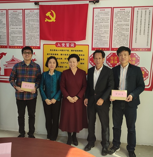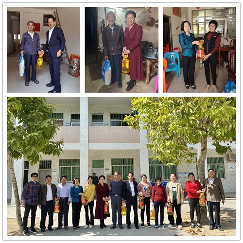 在农历新年即将到来之际,学校党委副书记、校长刘文清,党委副书记谢锦群、副校长王宜奋2月1日带领党政办主任陈景春、组织部部长邱培彪、工程技术学院党总支书记林卓歆到学校对口帮扶点揭西县大溪镇井新村,亲切走访慰问脱贫户代表和学校驻村工作队,并与大溪镇镇长林绪杰、党委副书记李勉鸿,井新村新一届“两委”领导班子等交流座谈。