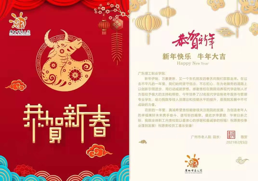 广州市老人院向我校发来新春祝福