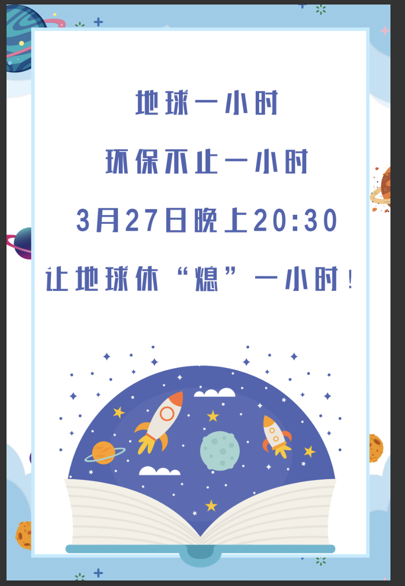 “地球一小时”公益活动日,提倡在当晚20:30-21:30关上不必要的电灯及耗电产品,表明人们对应对气候变化行动的支持。为提升大学生节约能源意识,积极响应“地球一小时”活动,当晚举办方不仅向全校师生发起“熄灯一小时”活动,并邀请我校吉他社、街舞社、茶艺社、文传歌唱部等社团参与演出,吸引大家走出宿舍、走出网络,感受低碳生活;同时活动还加入环保知识抢答赛等环节,为同学们派发环保小礼品,让更多的人参与到环保的队伍中。