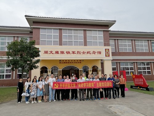 开平开放大学党支部组织学校全体党员到开平市周文雍陈铁军纪念馆、烈士陵园和谢创故居红色基地开展了以“学党史、忆先烈、担使命”为主题的党史学习教育。全体党员干部怀着崇敬的心情,瞻仰了周文雍陈铁军烈士纪念碑,举行了默哀仪式。在参观学习过程中,学校党支部委员敖宗欢同志讲述了革命先烈的英雄事迹,为党员干部上了一堂小而精的微党课,进一步坚定理想信念,激发对党的事业的忠诚之心。在参观纪念馆时,党员们从一张张照片、一件件文物中深刻理解周文雍陈铁军精神的时代内涵,真切感受到革命先烈为共产主义的远大理想和革命事业奋斗不息的风采以及无私奉献的伟大精神。
