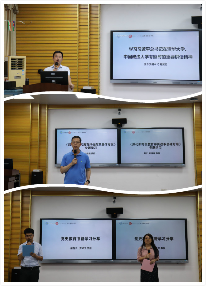 学院党总支宣传委员、院长彭伟强导学《深化新时代教育评价改革总体方案》文件精神,并就该文件的内容要义、校内具体工作推进进行解读。彭院长指出,新时代的教育评价改革,有助于更好地聚焦“立德树人”,推进教育与时俱进的良性发展,对育人方式、办学模式、管理体制等方面的创新优化,有正确、清晰的指引作用。