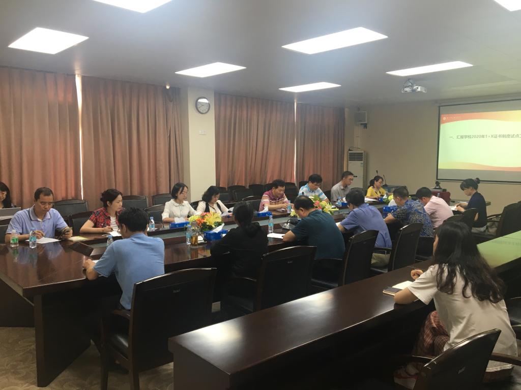 财务处、人事处、教务处、终身教育学院、学分银行管理中心和实训中心总结了2020年1+X证书制度试点工作情况,各试点学院、部门对2020年试点工作及2021年申报情况进行了汇报。2020年,我校完成了14个试点项目的证书考核,参与试点考核的学生人数1445人,通过考核1136人,平均获证率为79%,较好地完成了教育厅下达的有关任务。