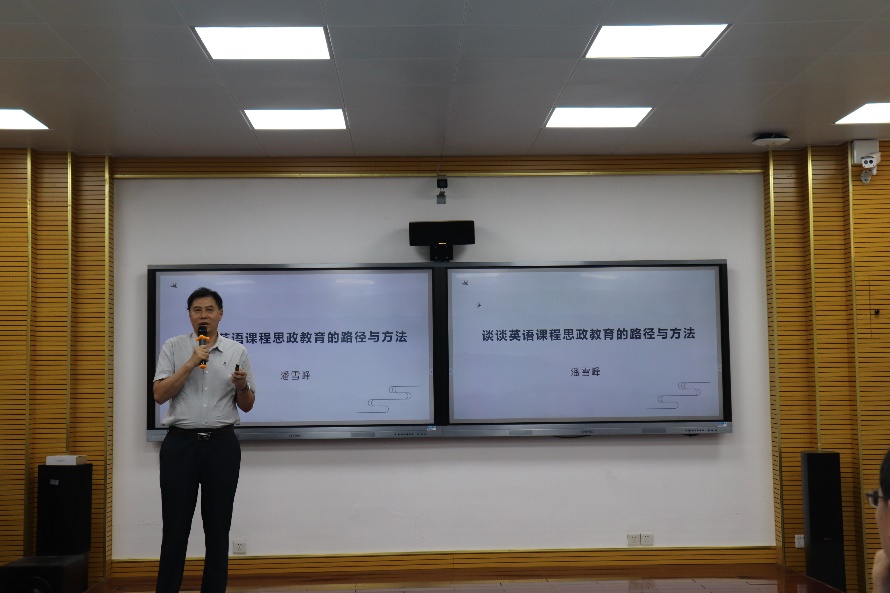 潘雪峰副教授为与会人员分享了他在高职英语课程思政教育教学改革和教材编写方面的经验,明确阐述了课程思政的概念,总结提炼了五大思政教育融入方式,并通过案例分析详细解答了外语教学中如何挖掘课程思政因子,实现课程思政与学科教学的完美融合,为落实“立德树人”任务提供了参考。