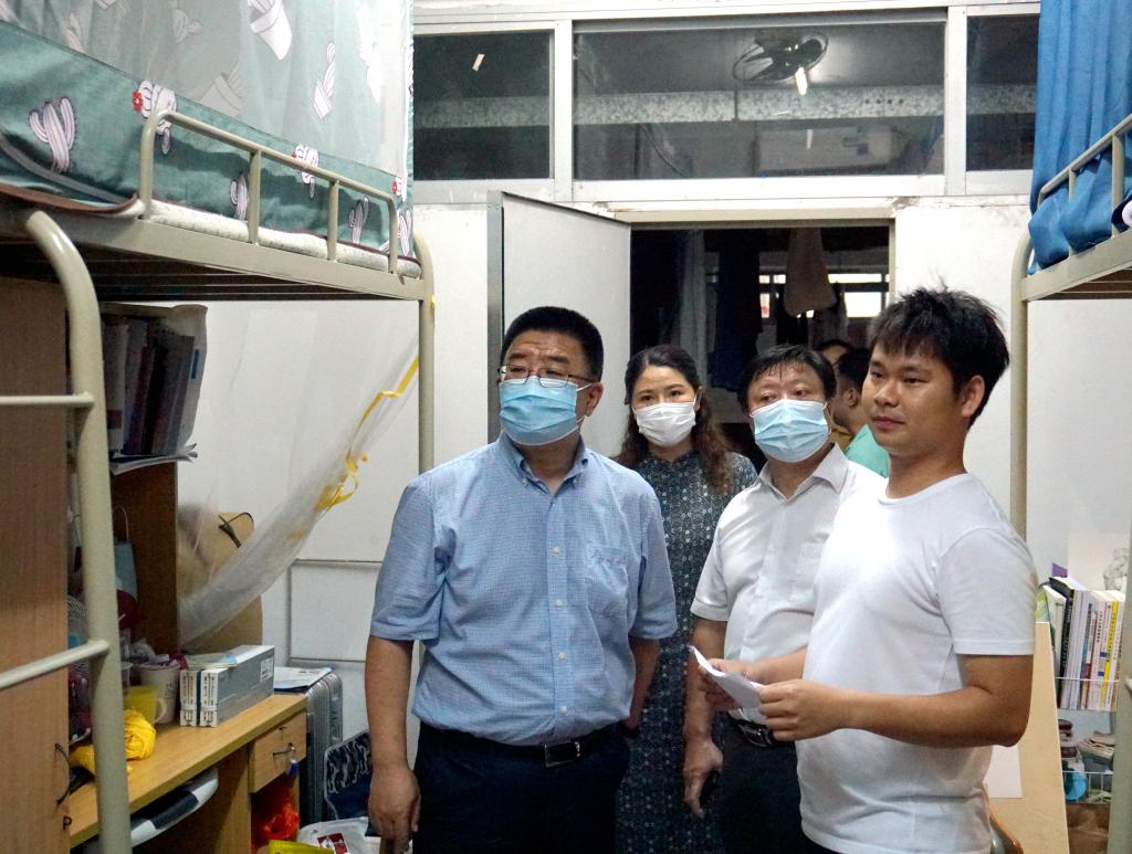 当天晚上,宋波副校长结合“我为群众办实事”学生座谈会上收集的意见建议,带领有关部门负责人和辅导员深入学生宿舍区域督查和现场办公,关心了解学生期望解决的问题,并与学生亲切交谈,他要求相关部门人员进一步加强管理水平,提升服务质量,为学生营造安全、健康、舒适的学习生活环境。