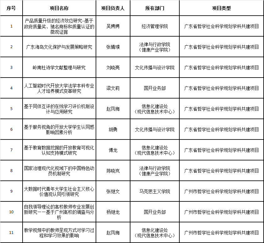 近日,广东省社科规划办和广州市社科规划办分别发布了《广东省哲学社会科学“十三五”规划2020年度学科共建项目拟立项名单公示》和《关于广州市哲学社会科学发展“十四五”规划2021年度共建课题立项的通知》,我校共有8项省哲学社会科学规划学科共建项目和3项市哲学社会科学规划学科共建项目获得立项。