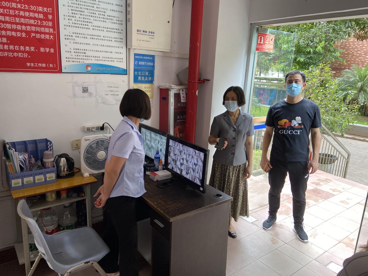 最后,王副校长查看了学生宿舍设施及生活服务保障情况,并向宿管人员为学生宿舍疫情防控工作的辛勤付出表示感谢,叮嘱宿管员要严格管理,做好宿舍楼入口体温检测、公共区域卫生安全和消毒通风等工作,全力以赴落实疫情防控和后勤保障各项工作,切实守护学生的健康安全。