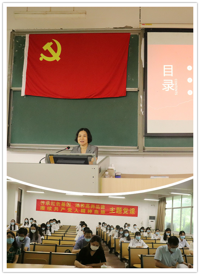 王副校长首先带领全体党员重温了习近平总书记在党史学习教育动员大会上的重要讲话,并详细梳理了中国共产党人精神谱系的基本脉络。她深入浅出地讲述了井冈山精神、长征精神、遵义会议精神、延安精神、西柏坡精神、红岩精神、抗美援朝精神、“两弹一星”精神、特区精神、抗洪精神、抗震救灾精神、抗疫精神等伟大精神的基本内涵和时代价值。党课内容翔实、思想深刻,有很强的教育引领价值。