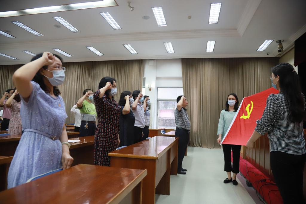 在总支书记的带领下,全体党员重温入党誓词,忆入党初心,坚定理想信念,激发爱党爱国之情。党员们还自发录制入党宣誓的微视频,分享至朋友圈,抒发他们的自豪感与归属感,砥砺初心使命。