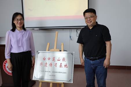 白口莲山歌是中山市五桂山区具有独特艺术价值的非物质文化遗产,为更好地传承与保护非遗艺术,6月24日,由广东理工职业学院与中山市五桂山街道教体文旅局共同举办的2021年香山非遗传承论坛暨白口莲山歌非遗传习基地揭牌仪式在中山校区开展,活动由文化传播与设计学院承办。