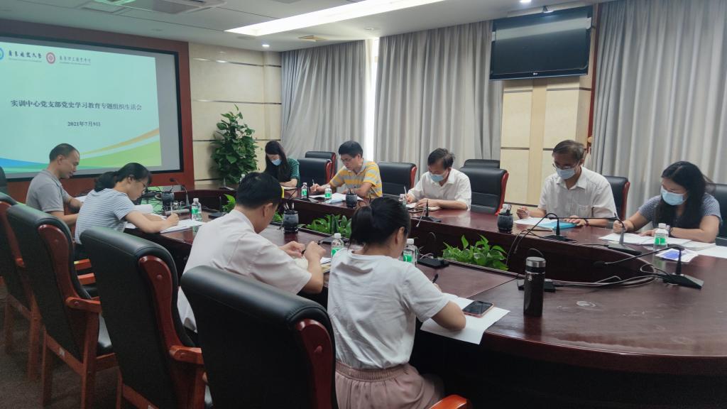 今年是中国共产党成立 100 周年,为深刻领会习近平总书记“七一”重要讲话精神,坚定理想信念,牢记初心使命,7月9日,实训中心支部召开了党史学习教育专题组织生活会,瞿志印副校长参加会议。