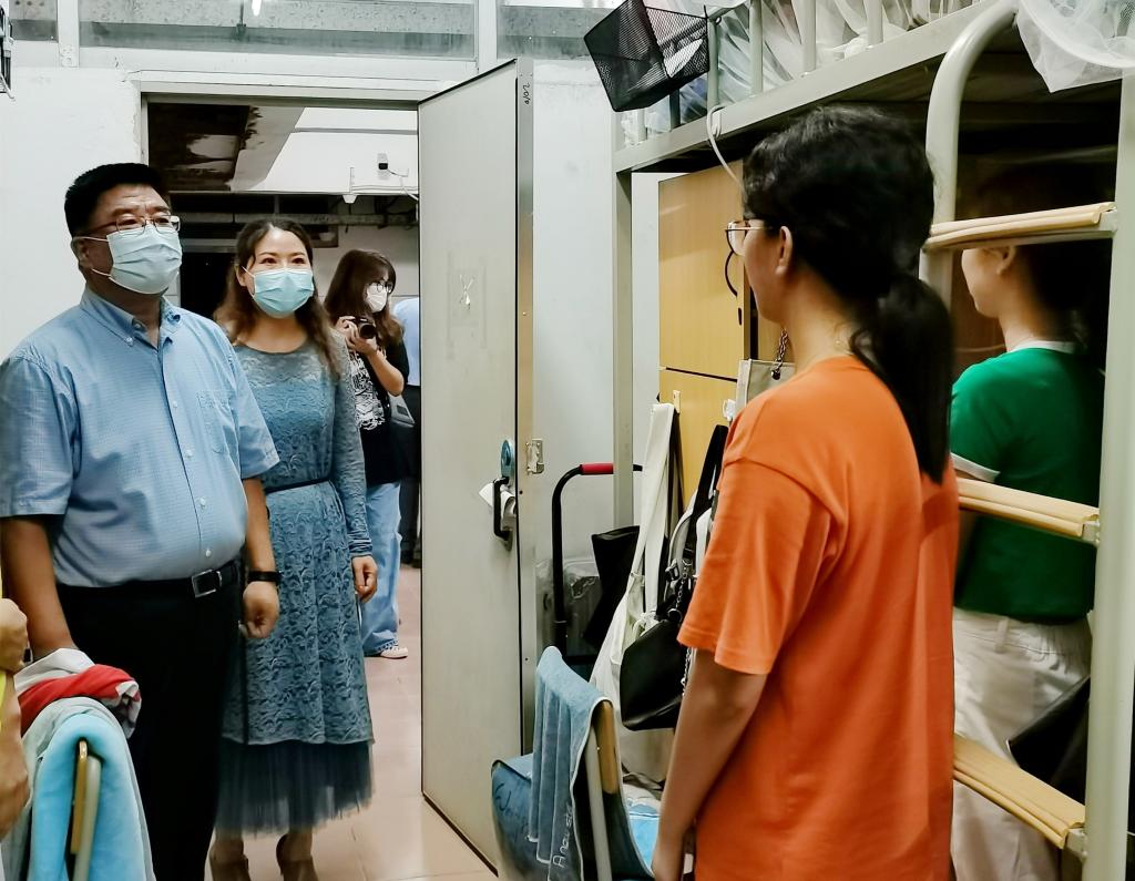 随后,宋副校长深入到宿舍中实地走访,对宿舍环境卫生、安全保障措施进行了检查。在与学生的亲切交谈中,宋副校长细心询问了学生的返校后身心是否适应和开学准备情况,关心学生的学习和生活。在检查经翻新改造后的新生宿舍时,他指出,要给新生一个好的住宿环境,留下好的第一印象。他要求各有关部门要以生为本,对开学准备工作再检查再落实,把好事办好、把实事办实。