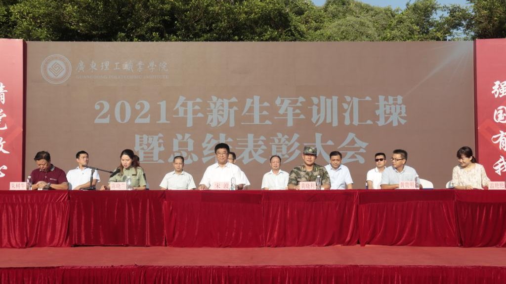9月26日上午,广东理工职业学院2021年新生军训汇操暨总结表彰大会在中山校区运动场举行,4100多名新生精神饱满、斗志昂扬,接受学校检阅。学校副校长、军训工作领导小组组长宋波出席大会现场并作总结讲话,中山市直属机关武装部黄晓利部长,军训工作领导小组成员,学工部、团委全体成员,全体教官和辅导员参加大会。大会由学生工作部(武装部)部长陈晓兰主持。
