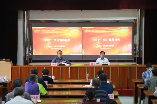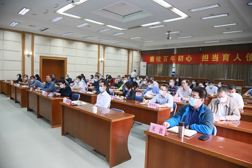 在党的十九届六中全会即将召开之际,11月4日下午,学校召开党委理论学习中心组2021年第8次(扩大)学习会暨统战成员“四史”学习专题报告会,省委宣讲团成员、省委宣传部副部长杜新山作辅导报告,学习百年辉煌党史,汲取奋进磅礴力量。学校党委书记刘启宇主持会议并讲话。