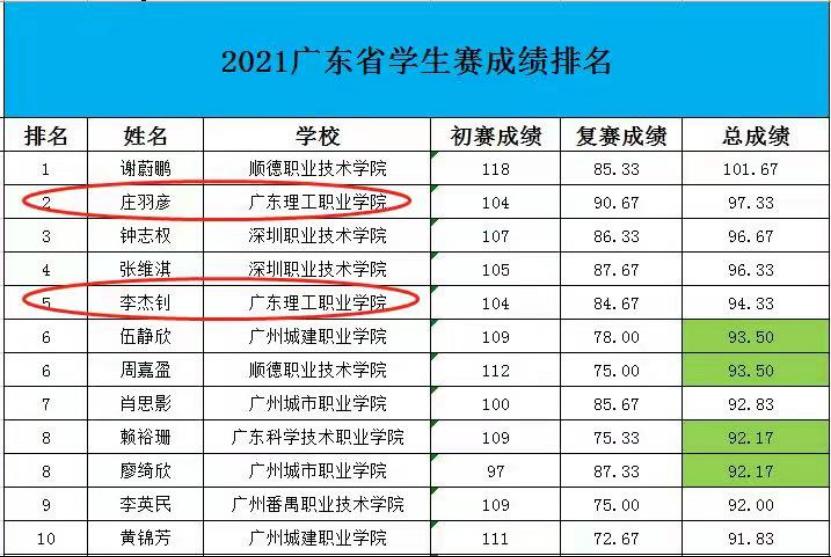 2021年广东省高职高专院校信息素养大赛广东省选拔赛于10月24日-10月30日在线上举行,全省共有49所高职院校11000多名学生参加角逐。经过初赛和决赛选拔,我校学生庄羽彦、李杰钊分别荣获本次省赛的第2名和第5名,顺利晋级全国高职高专院校信息素养大赛。
