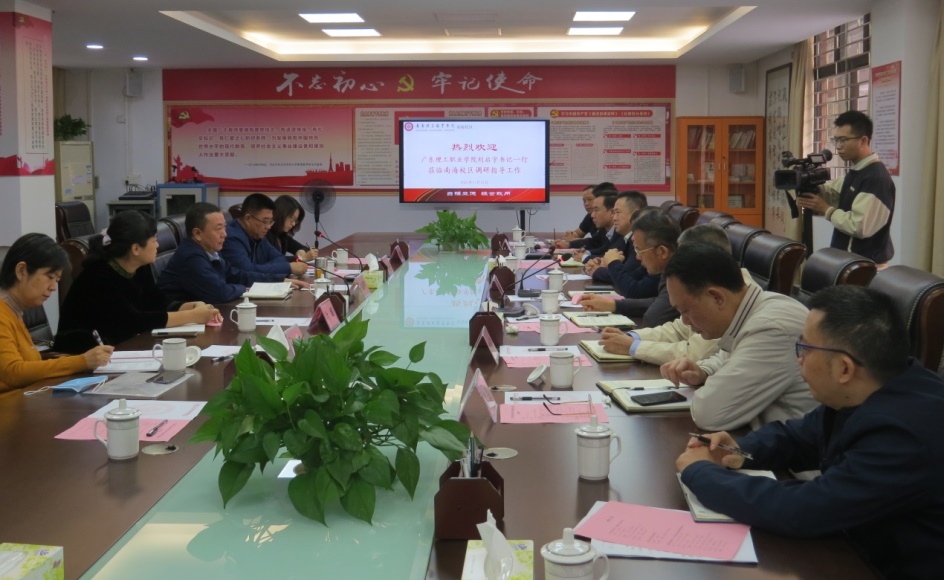 11月12日上午,学校党委书记刘启宇在副校长宋波陪同下,到南海开放大学(广东理工职业学院南海校区),深入教室、实训室、学生宿舍、食堂和运动场进行实地调研,并与佛山市南海区教育局和南海开放大学领导班子座谈。中午,刘启宇一行还与佛山市委常委、宣传部部长倪谦,佛山市南海区委常委、宣传部部长吕园园进行了工作交流。
