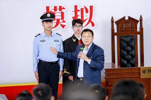 孙平作活动总结讲话。他指出,法庭的每一个场景,甚至法官、律师身着的服饰,都蕴含着深厚的法理意义。同学们应当通过此次模拟法庭活动,深入学习民法典的内容,提高自身的法治素养,在生活中也能知法、懂法、守法、用法。同时,他要求法律与行政学院继续努力组织好模拟法庭公演活动,将其打造成为精品学生文化活动,为学校推进“依法治校示范校”建设作出不懈努力。