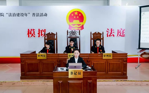 11月11日下午,学校在中山校区举办“法治建设年”大型模拟法庭公演活动。学校副校长孙平出席活动,规划与体系建设处、校团委、法律与行政学院师生共200余人一同观看。