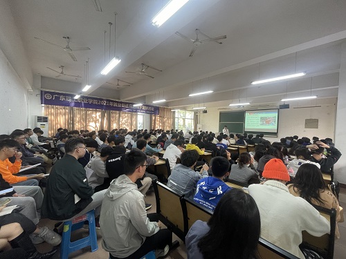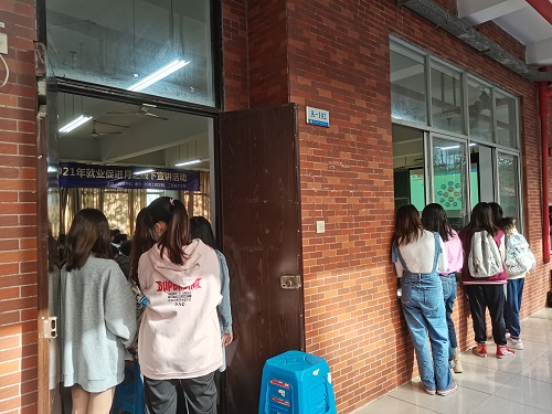 同学们提前半个小时就来到现场,教室内座无虚席,无座的学生就站在过道、走廊和教室门口旁听,宣讲会现场气氛十分热烈。宣讲会上,招聘工作人员播放了公司宣传片,对公司情况和招聘岗位的要求做详细介绍和说明,针对毕业生们关心的薪资待遇、住宿条件、工作时长、公司福利等相关提问逐一进行了回复。现场宣讲结束以后,有意向的毕业生提交了求职简历,随后分场地进行面试。