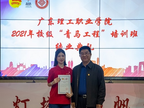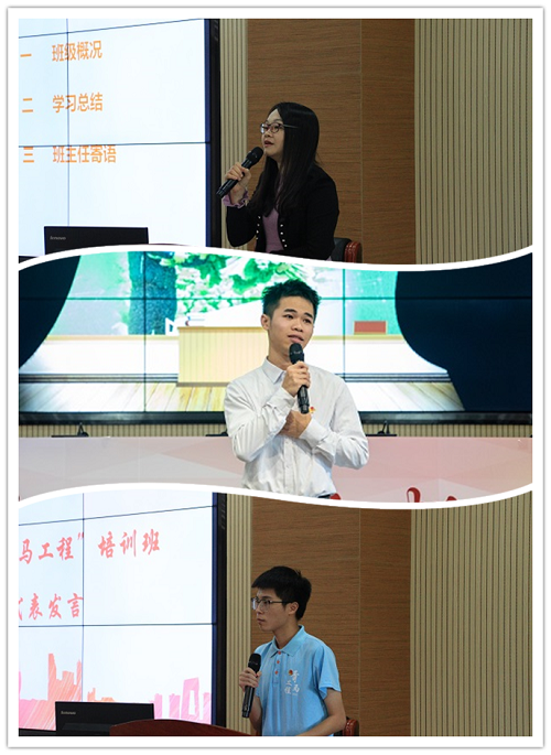 典礼上,曾于今年下半年作为中山市唯一的学生代表、最年轻的选手参加中山市青年演讲大赛全市总决赛的2020级魏光明同学,现场以作品《你的青春,有几度?》讲述了新一代青年对党的真挚情感,用掷地有声的青春宣言,展示了理工青年的使命与担当;培训班班主任李晓春老师对本次培训班工作进行了小结,入选省级“青马工程”班的本期学员陈华溢同学作学习心得分享。