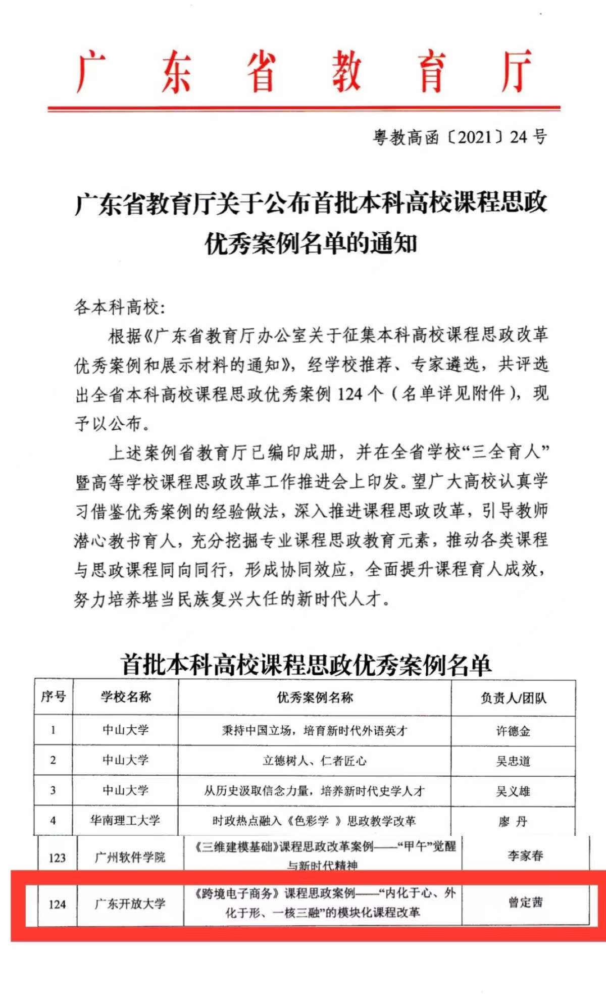 近日,广东省教育厅公布首批本科高校课程思政优秀案例名单,我校经济管理学院教师曾定茜申报的《跨境电子商务》被评选为优秀课程思政案例。