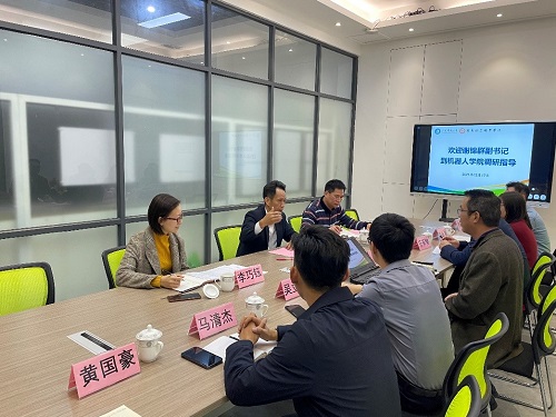 12月17日,学校党委副书记谢锦群在中山校区,先后到机器人学院、经济管理学院和后勤基建处调研。校党委组织部部长邱培彪、人事处副处长李巧钰和调研单位(部门)负责人及有关人员参加调研。