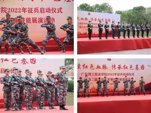 12月16日下午,广东理工职业学院2022年征兵启动仪式暨第二届大学生军事技能展演活动在中山校区立德广场举行,活动主题是“赓续红色血脉,传承红色基因”。学校副校长宋波出席活动,党委学生工作部(武装部)、团委负责人,各学院党总支书记(副书记)、全体辅导员和有参军意愿的同学们参加活动。