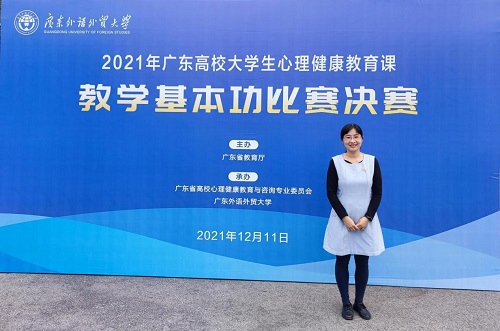 12月11日,2021年广东高校大学生心理健康教育课教学基本功比赛决赛在广东外语外贸大学举行,我校公共教学部廖文娜老师在比赛中获得三等奖。