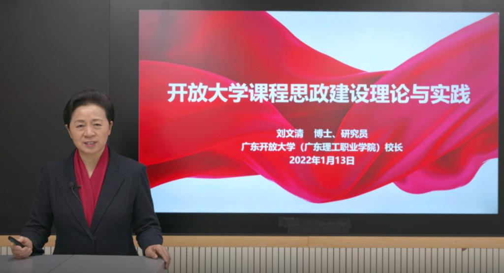 1月13日,学校党委副书记、校长刘文清应邀出席2022课程思政新年论坛并作“开放大学课程思政建设理论与实践”主题演讲,分享学校聚焦落实立德树人根本任务,贯彻“三全”育人理念,立足全省开放大学体系办学和开放教育实际,坚持“回归、融合、适需、泛在、一体”的建设理念和“导、训、建、用、评”的建设模式,推动课程思政与思政课程同向同行的生动实践以及取得的丰硕成果,得到与会者的一致高度评价。