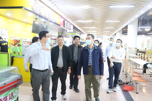 刘启宇先后来到校园门岗、防疫物资仓库、医务室、健康观察室、四期校园工程施工现场和师生食堂,详细了解校门出入管控、防疫物资储备、医疗服务保障、校内健康观察条件、工地防疫措施、建筑工程施工进度和食堂膳食供应等情况。