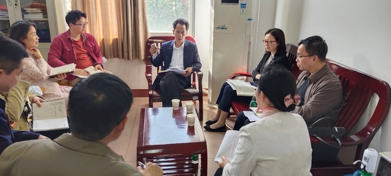 谢锦群一行首先来到图书馆(学习资源中心)流通书库,实地查看馆藏资源和空间利用情况,接着体验了朗读亭,随后与图书馆(学习资源中心)馆务会成员座谈。图书馆(学习资源中心)馆长潘美意从图书馆近年来在疫情防控、安全保障、队伍建设、资源建设、空间建设、读者服务、内涵提升等方面取得的主要成绩、目前存在的主要困难以及“十四五”发展的“智慧转型、品质提升、开放合作”目标任务等方面作了详细汇报。副馆长梁伟钧从人才、经费和场地三个方面汇报了部门面临的困难和挑战。各部门主任也汇报部门岗位职责和工作思路。谢锦群听完汇报后,对图书馆(学习资源中心)在疫情防控、资源建设、安全运营和服务提升等方面所做的努力和取得的成绩给予了肯定,对图书馆发展面临的问题进行了深入了解,并提出建设性思路。