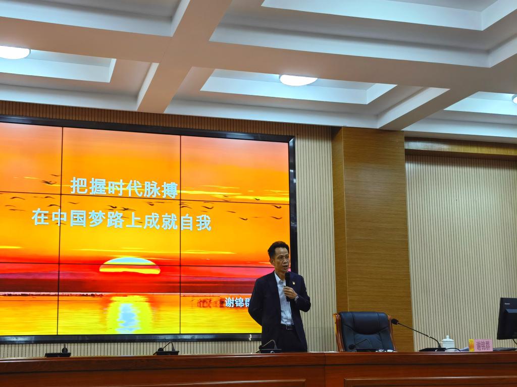3月23日下午,学校党委副书记谢锦群在中山校区学术报告厅以“把握时代脉搏 在中国梦路上成就自我”为题,给人工智能学院计算机应用专业学生讲“思政第一课”。
