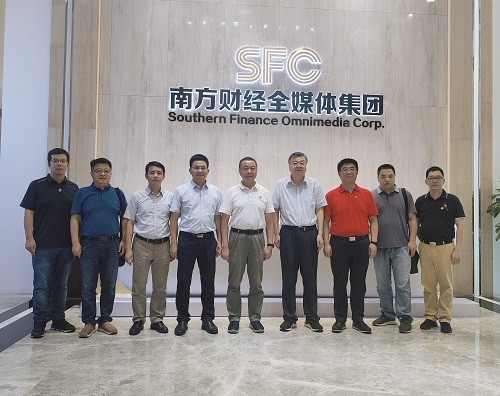 6月7日下午,学校党委书记刘启宇带队到南方财经全媒体集团调研交流,考察了南方文化产权交易所、岭南活力非遗艺术馆,并围绕推动双方深入合作进行座谈。南方财经全媒体集团党委书记、董事长任天阳,总经理张志兵,党委委员、纪委书记韦文忠和学校副校长宋波参加活动。
