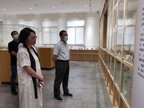 在文物陈列室,曹劲介绍了郁南磨刀山遗址、英德青塘遗址、“南海一号”沉船等广东近年来重大考古新发现新成果,以及研究院正在从事的相关发掘、修复和整理工作。
