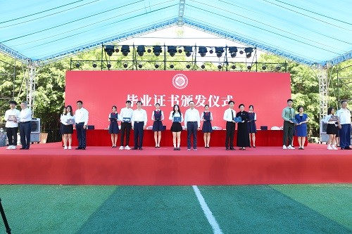 校领导为毕业生代表逐一颁发毕业证书