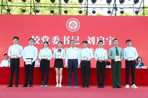 刘启宇代表学校向毕业生赠送纪念品,指出追求进步、不懈奋斗是青年最宝贵的特质,也是党和人民最殷切的希望。全体毕业生要勇于接过历史接力棒,用青春的能动力和创造力激荡起民族复兴的澎湃春潮,用青春的智慧和汗水建设一个更加美好的中国。