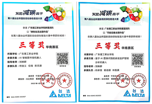 近日,第八届“台达杯”国际高校绿色智造大赛圆满落下了帷幕。学校工程技术学院(物联网学院)学子何信义、何卓恒等同学在学院专任教师刘映群的指导下,奋勇争先,荣获华南赛区三等奖两项。