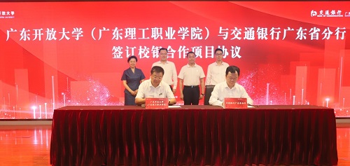 会上,双方代表共同签署了《广东开放大学(广东理工职业学院)与交通银行股份有限公司广东省分行校银合作项目合作协议书》。