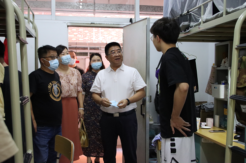 9月4日下午,学校大二、大三学生已基本返校,学校副校长宋波带领学工队伍深入学生宿舍走访,了解学生返校情况,关心学生开学前身心状况和开学准备情况,并对心理咨询中心和学生活动中心建设情况进行调研指导。学生工作部负责人,各学院党政负责人、全体辅导员和部分班主任分头遍访学生宿舍。